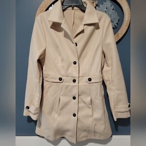 Temu brand coat. New unworn in original pkg. Nice lightweight woman's sz medium. 2 cute pockets in front. button up.