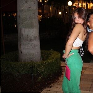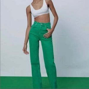 Zara Bloggers Favourite Brat Balletcore High Waisted Wide Leg Jeans Green Size 4