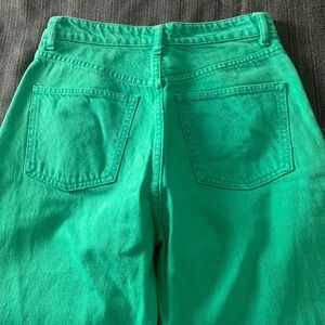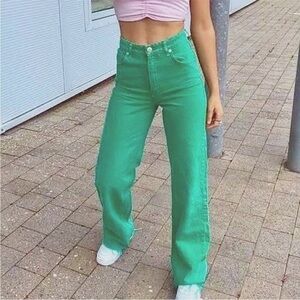 Zara Bloggers Favourite Brat Balletcore High Waisted Wide Leg Jeans Durable Denim Green
