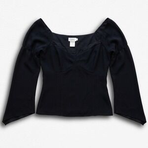 CDC Womens Vintage Style Bell Sleeve Lace Trim Sweetheart Neck Top Black Large