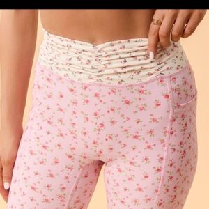 Blogilates Women's Ruched Waist Leggings, Pink Floral