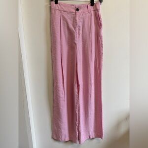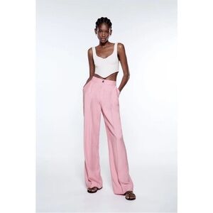 Beautiful Zara high-waisted wide leg trousers in a bright pink color. Lightweight fabric with a soft linen feel that makes them perfect for spring and summer outfits.
