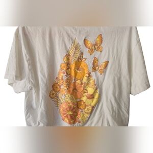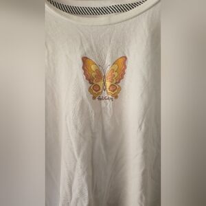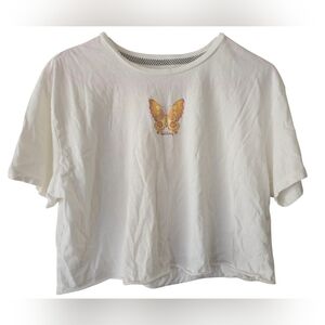 Volcom Crop Top Women's Medium Flowers Butterfly White. Pre-owned and in good condition. See photos provided for the overall condition of the shirt.