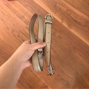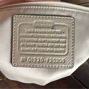 circa 2013 (I believe) Code: G1320-F25206 silver tone hardware Condition: good-previously owned and used item is in good condition with minimal signs of use. This may include some small pen marks in the label and stains removable strap. The latter seems like it will be wipeable whereas I am unsure about the small blue stains on the creed label. Composition Lining: Satin 100% Outer: Leather 100%