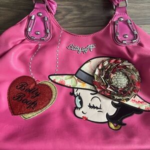 Vintage Betty Boop Bright Pink Shoulder Bag with Embroidered Patch
