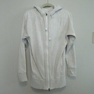 Athleta Long Line Zip Hoodie. Light gray. Thumbholes.