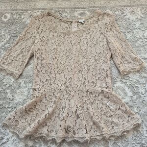 Babaton Aritzia Women's Feminine Romantic Brown Lace Peplum Blouse Size 2/S