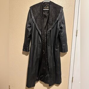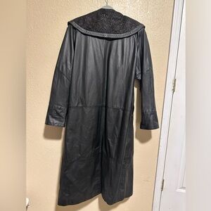 Vintage G-III Long Black Leather Trench Coat Jacket Size Medium