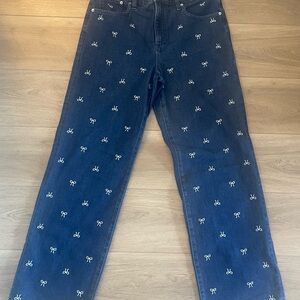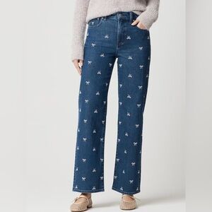 Jcrew Factory Bow-embroidered slim wide-leg jean in all-day stretch