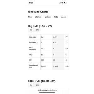 Size:Big Kid 6.5 Y = Women Size 8
