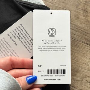 Brand new black crop top by Athleta. Ideal for workouts or casual wear. No rips or tears. Built in bra.