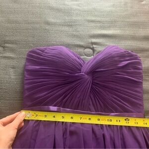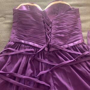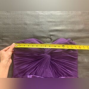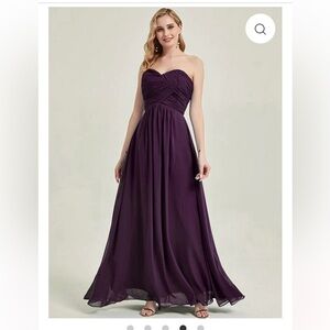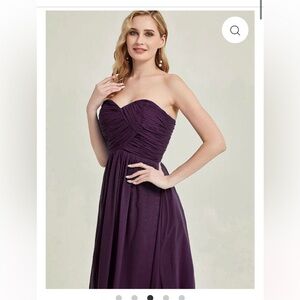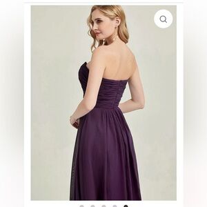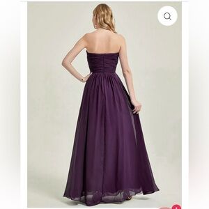 This elegant purple strapless evening gown is perfect for any formal occasion. The flowing design and rich color make it a standout piece in any wardrobe.