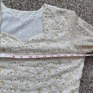 Beautiful and Elegant set with intricate embroidery and gold sequin accents.