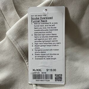 Lululemon Oversized Funnel Neck Half Zip sweatshirt in bone colorway. XL/XXL size. New with tags, smoke free home.