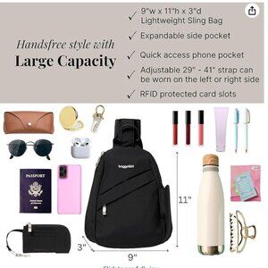 LIGHTWEIGHT DESIGN: Measuring in at 9"w x 11"h x 3"d and weighing just 11 oz, our crossbody sling bag is perfect for both travel and day-to-day use. The front and back zip pockets fit iPhone 15 and iPhone 15 Pro Max, and RFID blocking sleeves for cards protects your piece of mind while on-the-go.