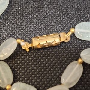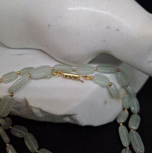 VINTAGE Jadeite Beaded Necklace with Golden Accents 24"