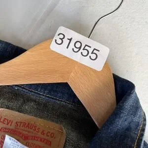 Pre-owned Levi's denim jacket with light general wear from prior use and laundering. Denim fabric shows mild overall fading and creasing along seams and cuffs but remains clean and intact without holes or stains. Buttons, buttonholes, pockets, and seams are secure and fully functional.