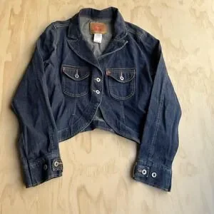 Y2K Levi's Jacket Juniors X-Large Blue Jean Denim Cropped Button Front Blazer