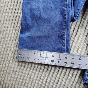 The Veronica Beard Jeans Carson Ankle Flare High Rise in Tide Down are a stylish and trendy choice for women looking for a wide-leg, high-rise fit. Made with a down fabric, these jeans offer a unique texture and look. The ankle flare and high rise give a flattering silhouette, while the 27-inch inseam provides a comfortable and on-trend length. In a classic blue color and size 26, these jeans are versatile and perfect for both casual and dressed-up occasions.