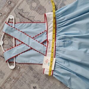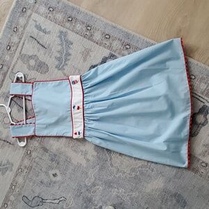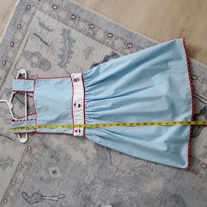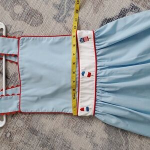 NWT Stitchy Fish Girls Patriotic Embroidered Ice Pop Summer Dress Sz7. Great new with tags Stitchy Fish Patriotic Dress - perfect for the 4th of July. The dress is light blue with red ric-rac trim and features embroidered patriotic-themed icons on a white waist band.