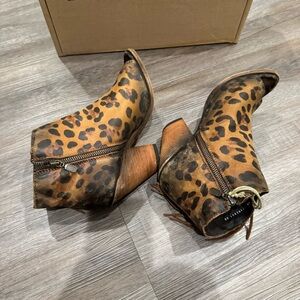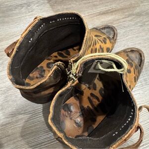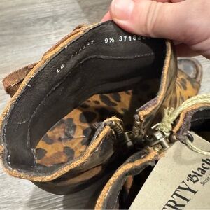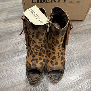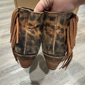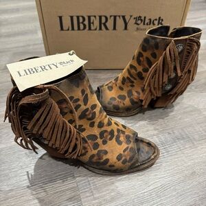 Liberty Chita Miel Concho Fringe Peep Black Leopard Stone Washed Boots Booties