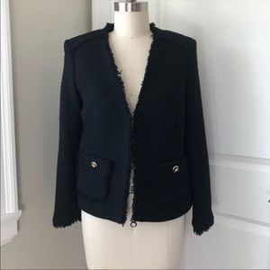 Zara Black Tweed Jacket V neck Blazer 2444 159 800