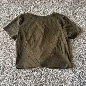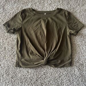 Olive Green Twist Front Short Sleeve Top