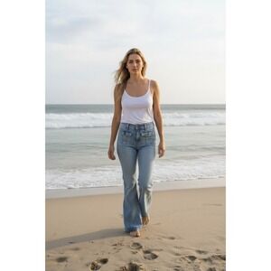 Crafted from soft stretch denim, these jeans move with you while maintaining their shape throughout the day. The slim flare cut gives the look of a tailored fit with just the right amount of flare for a polished yet effortless vibe. Whether paired with a fitted tee and sneakers for daytime or dressed up with heels and a blouse, these jeans offer versatile styling for any occasion.