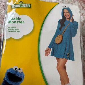 Om nom nom! πͺ This officially licensed Sesame Street Cookie Monster costume is brand new and sealed β ready to make you the hit of any Halloween party! Includes the fuzzy blue hooded dress AND the adorable cookie crossbody bag. Such a fun, recognizable costume that photographs amazingly.