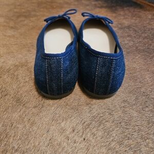 Step out in style with these chic blue denim ballet flats. Perfect for casual outings, these shoes offer comfort and elegance. There is a line drawn thru the name on the inside of the shoes to prevent returns. Ladies size 9.5 and brand new!