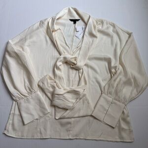 Banana Republic Ivory Tie Neck Blouse Silk Blend Long Sleeve Top Size L NWT