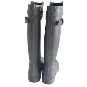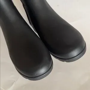 hunter womens black rubber matt rain boots with buckle detai, round toe, pull on, in very good condition
