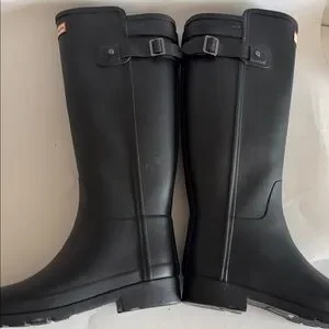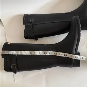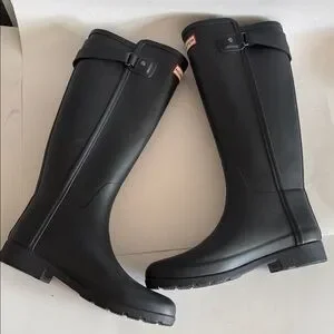 Hunter Womens Original Black Refined Back Strap Tall Rain Boots size 7