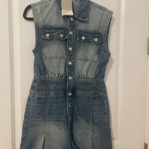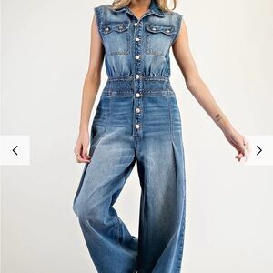 NWT Sleeveless Wide-Leg Denim Jumpsuit - Snow Washed Blue