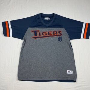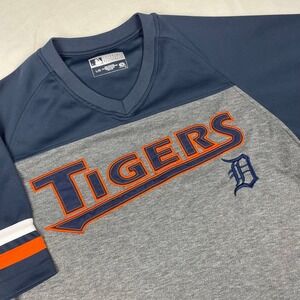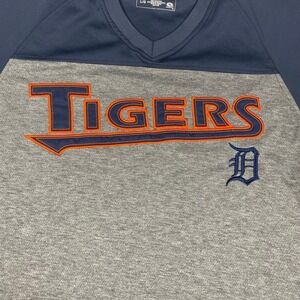 Detroit Tigers MLB True Fan Jersey Mens Large Navy Gray Colorblock V-Neck Shirt