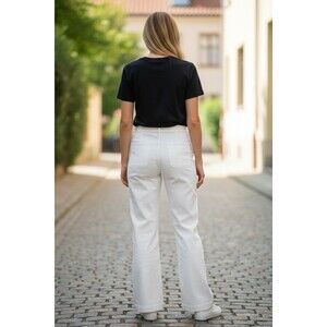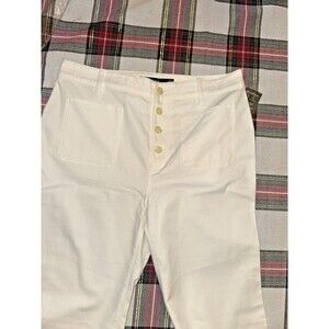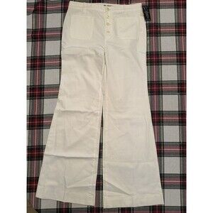 The product is a pair of Ralph Lauren women's pants in size 10. These dress pants are made of a blend of spandex and cotton, featuring a flared leg style and a classic white color. The regular size pants are designed for a comfortable and stylish fit, suitable for various occasions. Perfect for any woman looking for a versatile and high-quality pair of pants from a reputable brand like Ralph Lauren.
