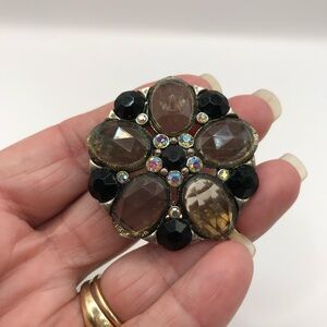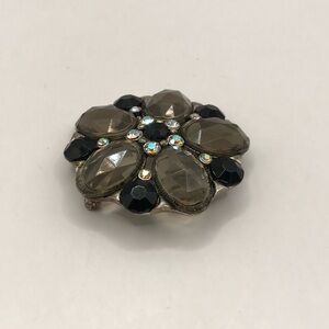 Black &Grey Acrylic Gems Floral Brooch