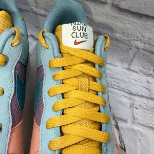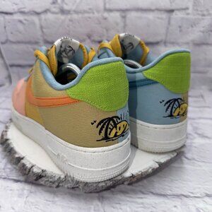 The Nike Air Force 1 '07 LV8 Next Nature Low Sun Club Shoes in Men's Size 11.5 are a stylish and comfortable pair of sneakers perfect for casual occasions. Featuring a lace-up closure and a low-top design, these shoes offer a cushioned and comfortable fit for all-day wear. The colorful multicolor pattern and rubber outsole make them a trendy choice for summer and spring seasons. Made with textile upper material and a foam insole, these athletic shoes from Nike are designed for walking, beach activities, and basketball, adding versatility to your wardrobe.