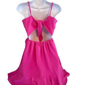 American Threads Bright Pink Mini Dress with Spaghetti Straps