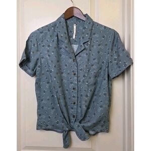 KUHL Elsie Floral Short Sleeve Womens S Button Up Tie Front Blue MSRP $75