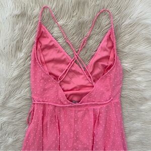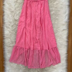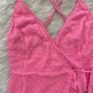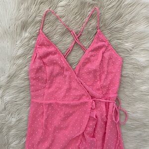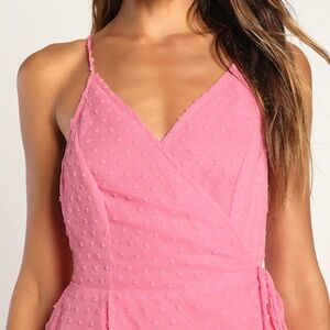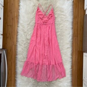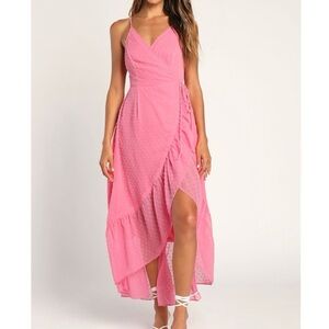 Lulus Bubblegum Pink Swiss Dot Effortlessly Easy High-Low Midi Wrap Dress XS