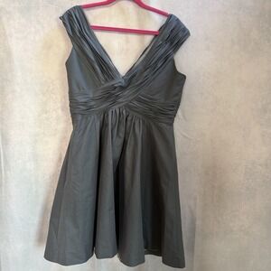 Mirror of Venus Anthropologie Gray Silk V Neck A Line Dress Size 14 Pleated