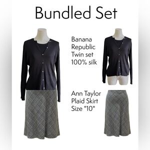 See listings of each on closet for more pictures. Ann Taylor skirt with Banana Republic Twin set (size large) Cardigan and short-sleeved shell, crew-neck short-sleeved ribbed sweater.