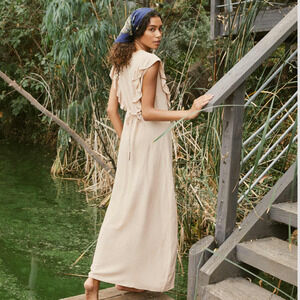 Christy Dawn Women's the Jessa Dress Maxi Ruffle trim in Oat stripe size Medium