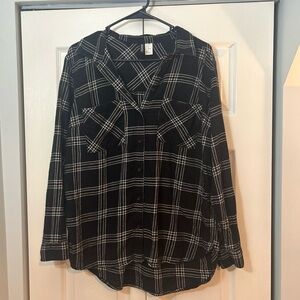 H&M Divided Black & White Plaid Button Down Shirt -Women’s Size 10 (Oversized)