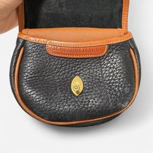 All weather leather saddle waist bag, black and tan genuine pebble leather belt bag.
