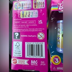 Exciting Barbie Land Mini Pop Surprise set. Features vibrant pink and blue packaging. Includes fun accessories for creative play.