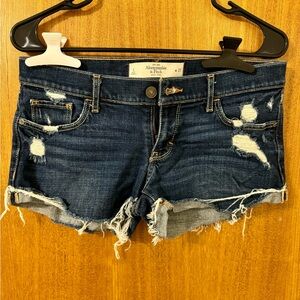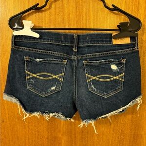 Vintage Abercrombie & Fitch Women's Dark Blue Distressed Jean Shorts