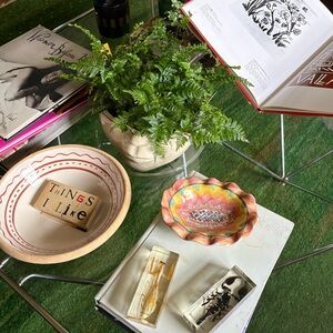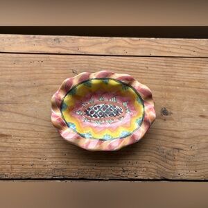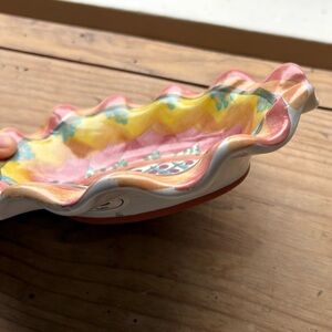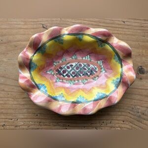 MacKenzie-Childs Pink and Yellow Ruffled Ceramic Trinket Dish