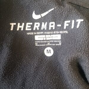 Nike Therma-Fit Sweatpants. Drawstring Waist. Nike Logo on Leg. Size Medium. 100% Polyester. Small runner on backside as shown in picture